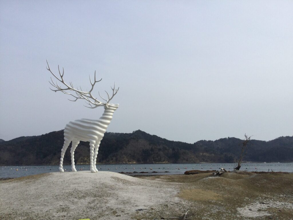 帰りは、またおでん屋さんに勧められた萩浜に向かう。そこに設置された「White Deer」という鹿の作品を見る。この作品は、東日本大震災の復興を祈念して2017年から開催された、美術と食と音楽の総合芸術祭の作品の一つだそうだ。店員さん曰く、その場所の氣がいいので感じ取ってみてほしいという話だった。漁村の中の、こんな所を入って行っていいんですかと思う道を行くため、周辺で迷いに迷い、そこの漁師さん達の視線を感じながら、ようやく着いた。わかめ漁で思いの外体力を消耗していたようで、到着して1時間半程、駐車場で眠ってしまった。