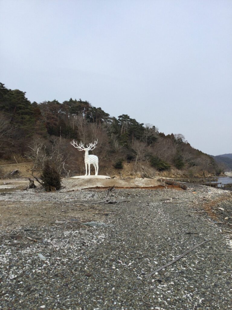 確かに、そこだけ風が通り、開けた感じがある。けれども、何か濃淡がある。像から離れた場所と像の近くを比べると、この「神の使い」と言われる迷い鹿を象った白い鹿の像に神聖な氣が宿っている感じがする。震災への鎮魂や何らかの祈りが込められ、神様へと通じる意図を汲んで、これを依代として神様の意思が降りているようなそんな空氣がある。あくまでわたしの体感で、どこまでそのような作業が行われたのか全く知らない。けれども、形ある所に神の意思が宿るというのはあるように思う。